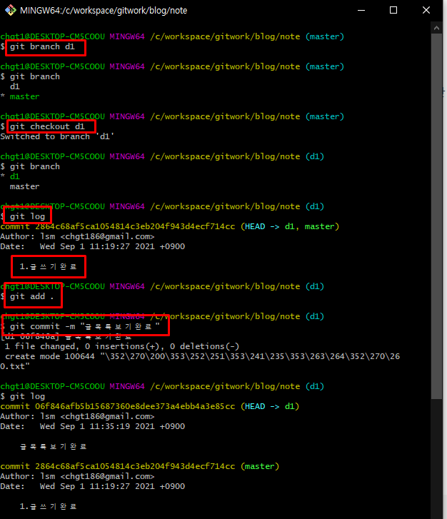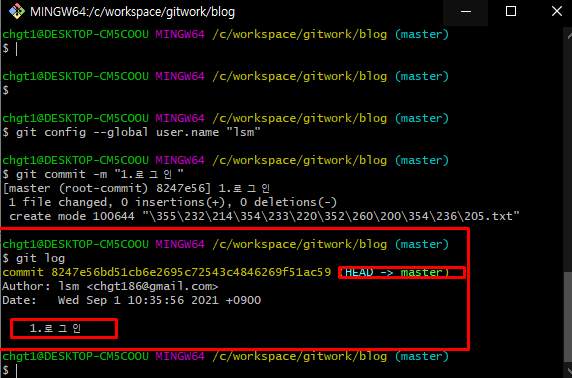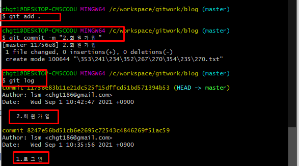 git commit -m "1. 로그인" -> 헤드에 1. 로그인 을 저장