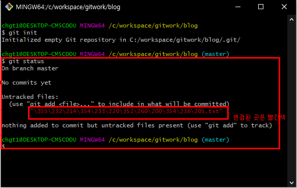 git status -> git 현재상태